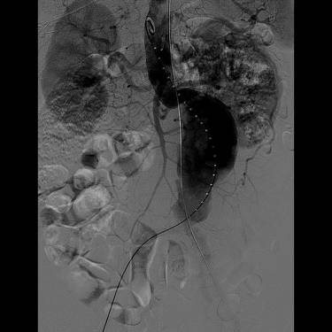 腹主动脉瘤腔内修复术(EVAR)是治疗腹主动脉瘤的微创手术方式,其手术适应证和禁忌证基本与开放手术相同,其特点是创伤小,避免了传统手术所带来的巨大创伤和痛苦,降低了病人心、肺等重要脏器并发症的发生率和死亡率,尤其对于一些有严重合并症、预期不能耐受传统开腹手术或手术后可能出现严重并发症的高危病例提供了治疗的机会。随着“开窗技术”、“烟囱技术”等的成熟和带分支支架及多层支架的出现,使得越来越多原本需要行开腹手术治疗的复杂腹主动脉瘤倾向于腔内治疗。另外,对于某些累及内脏动脉而不适合行腔内治疗,且合并其他严重疾病不能行开放手术治疗的患者,为了减少手术创伤,为微创腔内修复手术创造条件,可应用联合开放手术和腔内修复术的杂交技术来治疗。